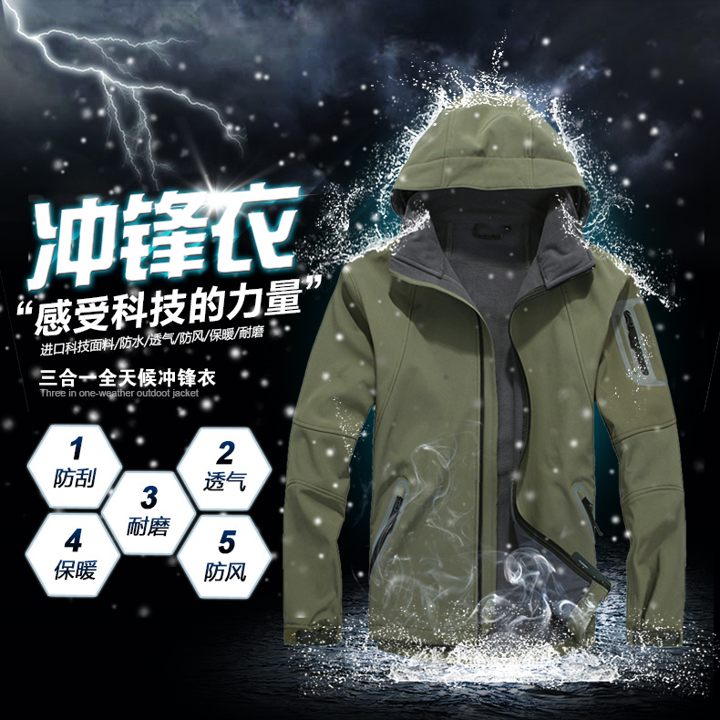 沖鋒衣只是戶外多功能外套的一個名稱。目前市場上最流行的沖鋒衣是外層防水防風,內層透氣排汗的一種雨衣服裝。